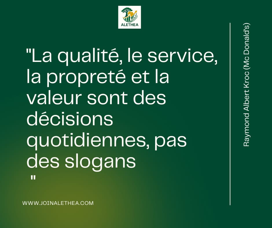 Ray Kroc rappelle que les piliers du succès en restauration (qualité, service, propreté, valeur) ne sont pas des concepts abstraits. Ils se matérialisent dans :